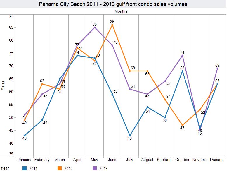 The overall sales volume in 2013 was similar to that of 2012. In 2012, 764 gulf front condos sold in Panama City Beach. For 2013, sales increased by 2.87% with 786 units sold.