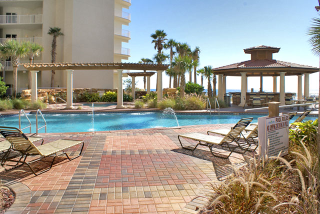 The amenities at the Shores of Panama are pretty impressive and help create a resort-like feel to this development. There is a 14,000 square foot gulf-front lagoon pool with fountains and plenty of lounge seating. The pool has several different sections as well as a large zero-entry area for easy entrance into the pool. Often, children will play in this area since it starts at no depth and gradually gets deeper. For the adults, there are two Tiki bars in the pool area.