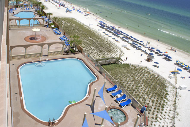 Sunrise Beach condominium was completed in the first quarter of 2006. It is located just east of Pier Park in Panama City Beach. The property holds roughly 348 feet of pristine beach frontage and includes 213 residential condominiums that stand 23 stories tall. Sunrise Beach contains a fully staffed lobby and reception area. The gulf front sun deck is located above the parking garage and contains two pools, two Jacuzzis, and a play fountain for the children. There is also a nice sized fitness center on this same level that looks out over the pool and Gulf of Mexico. Sunrise Beach condominium has one, two and three-bedroom floor plans.