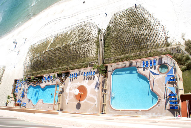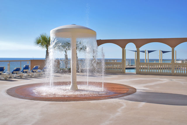 There is a childrens play area located between the two pools on the sundeck.? Sunrise Beach has a nicely sized fitness area that overlooks the sundeck, pools, and the gulf.? The sundeck runs the length of the condominium. It contains two pools, the childrens play area with mushroom fountain, and two hot tubs.? The balconies are nicely sized and there is a lobby reception area staffed by the onsite rental department.